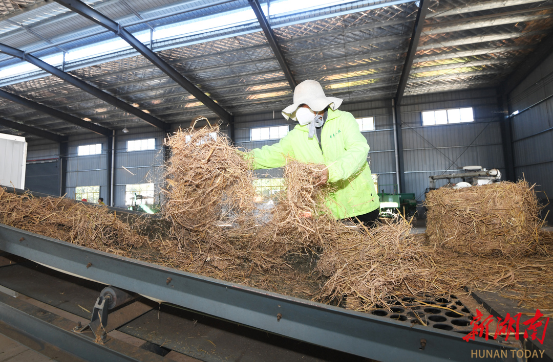 在浏阳淳口,水稻秸秆被回收加工成花炮底座所需的草纤维(图源:新湖南)